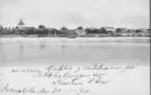 Vy över hamn, i bakgrunden pansarkryssaren Fylgia, logimentbåtar och pansarskepp.