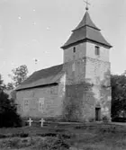 Den välbevarade romanska absidkyrkan med något senare torn härrör från 1100-talet. Valven tillkom på 1400-talet och försågs 1754 med kalkmålningar. Den ursprungliga finhuggna triumfbågen med palmettfriser vid anfangerna, som flyttats till tornbågen vid en reparation 1702, återfick 1964 sin rätta plats. Det ursprungliga altaret är bevarat. Predikstolen tillkom 1691. Tre medeltida skulpturer är bevarade liksom dopfunten från 1100-talet. http://www.ne.se/jsp/search/article.jsp?i_art_id=225249