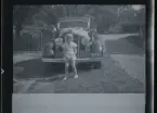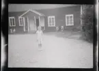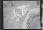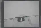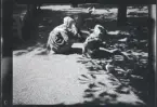 Ett barn på en kälke med ratt.