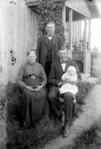 Alice och Evald Gustavsson med sonen Morgan. Hemma hos Alice i föräldrahemmet Sjöared, Hantverkarvägen 3. En annan uppgift säger att detta är: Ester och Henry Ahlqvist med barn.