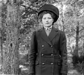 TVÅ KVINNOR STÅRENDE VID ETT TRÄD.