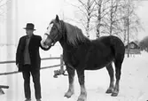 Kjell Johansson plöjer vid Torrekulla gård, våren 1953 eller tidigare. De stora arbetshästarna hörde till Torrekulla gård, där fadern Allan var rättare.