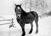Hästen Docka. Till höger Ekans gård, Ekan 1:1 år 1953. Till vänster ses Svinfarmen - Kållereds brädgård vid nuvarande Bangårdsvägen. Vägen i förgrunden är vägen till Tollered och Heljered.