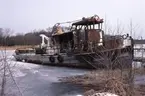Bilden visar brandskador på taket av två virkeskjul som låg bredvid bildhuggareverkstaden.