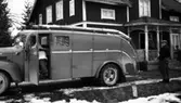 Brandmän släcker byggnad i Hallsberg, 1960-tal