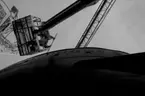 Isbrytaren Sankt Erik vid dockan på Beckholmen för underhållsarbete, november 2005. Närbild på propeller.