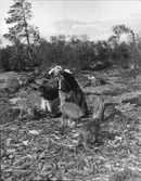 "Emilie Demant Hatt med vore stakkels forsultne Ulveunger...". Konstnären och författaren Emilie Demant Hatt med vargungar.