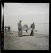 Text på montering i arkivet: Garnen upphängda. "Samlingsgårén" i förgrunden.