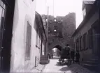Skioptikonbild med motiv från marknad eller gata i Horb am Neckar. Bilden har förvarats i kartong märkt: Resan 1908. Horb 7. VIII.