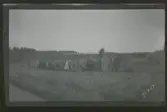 Skördearbete på Idhult 1:2 i Svinhult socken 1928. På bilden ses de nyblivna ägarna Sigurd och Sigrid Andersson.