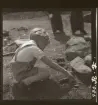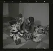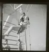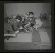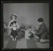568 Trenters reportage. En man utför trolleri-trick med näsduk och tändsticka.