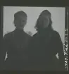 Två män, Frans Persson och hans dräng Paul Andersson vid grindledet i hagen.