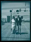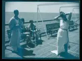 Skansen. Vårfesten 1899. Ett ekipage i öppen vagn. Några glada personer sitter i vagnen, en kusk sitter på kuskbocken.