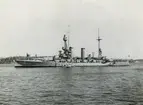 [från Fotobeskrivning:] "Pansarskeppet Sverige." "Från kustflottans besök i Köpenhamn aug. 1946. Kfl lämnar Köpenhamn" "Marinens Pressdetalj 42/58 Codenr.: 000.2 Reg.Nr.: 5661"
