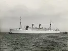 Foto i svartvitt visande passagerarmotorfartyget Stella Polaris i Köpenhamn den 27.8.1954