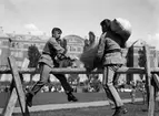 "Framför kasernerna slogs man med hösäckar" på Regementets dag, Upplands Regemente, I 8, Polacksbacken