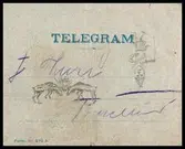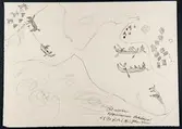 "Torne lappmark. Jukkasjärvi socken.Talma lappby. Teckning föreställande stångande renar och en samisk man av Johan Turi på ett telegram. L.A. 853 nr. 4"