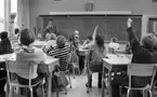 Undervisning på Lindöskolan första terminen skolan var i bruk.