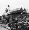 Småland, Kalmar län, Stranda härad, Döderhults socken, Saltvik. Motorgaleasen Ellen av Böda på slipen för reparation.