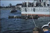 Bärgning av en av de tre bronskanoner som fanns kvar ombord på Vasa.