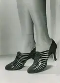 "Mellanskor. Eftermiddagssko av svart mocka med lackskinnsribbor".