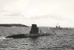 Bilden visar ubåtarna Najad och Neptun som ligger förtöjt bredvid varandra.