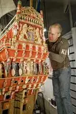 Modellbyggare Stefan Bruhn bredvid modellen av Vasa i skala 1:10.