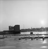 [från fotobeskrivningen:] "FINNGRUNDET flyttas från Rosenvik till Wasavarvet""3.6.1970"