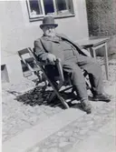 'Späckhuggare liggande på bänk framför byggnad av tegel. :: Ingår i fotonr. 6992:1-3 med foton av späckhuggare av August Wilhelm Malm 1868 till ''Hvaldjur av A.W. Malm'