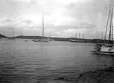 Tryckt text på kortet: "Uddevalla. Hamnen." "Uddevalla Pappershandel, Hildur Andersson."