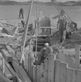 Arbetsbilder från vattenrallare Egon Frisk, byggnation av troligtvis en kraftverksdamm i ett vattendrag.