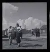 Fotgängare på Stora Badstugatan, nuvarande Sveavägen. T.v. Adolf Fredriks kyrkogård.