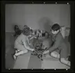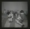 568 Trenters reportage. En man utför trolleri-trick med näsduk och tändsticka.