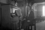 Doktor Werner spelar pianot på Brahegatan 20. Solljuset strilar in från ett fönster till höger.