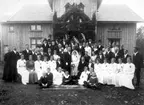 Ester Brandberg och skolbarn. Frk Ester Brandberg, lärarinna i Vesene 1907, har bott i Skara mittemot Domkyrkan som barn, sedan på Klostergatan.
