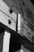 Foto av två unga kvinnor (en i studentmössa) , som sitter på bryggan utanför kallbadhuset i Varberg. I bakgrunden skymtar en liten flicka och ett antal segelfartyg.