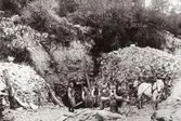 En grupp arbetare, ev arbete med stenhuggeri.