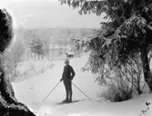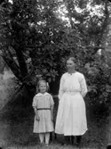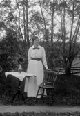 En segelbåt med tio personer i Svennevadsviken i sjön Sottern, och en eka med ca fem personer. I bakgrunden torpet Viken uppe i backen söder om Sottern.
