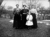 SLÄKTGRUPP. FÖRSTA FRÅN HÖGER LISA JOHANSSON (LARSSON) FJÄRDE FRÅN HÖGER GUNNEL JOHANSSON OCH FEMTE, SOM KLAPPAR HUNDEN, ANNA JOHANSSON ALLA KVINNORNA SYSTRAR