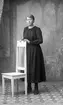 Enligt senare noteringar: "Avfotografering av äldre ateljéfoto. En kvinna med fin dräkt med frans nedtill på ärmarna.."
