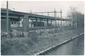 Personal med hund här vid Hästholmen station. Rälsbuss tillhörande Statens Järnvägar, SJ Ydo1 422.