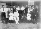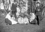 "I trädgården! den 15 juli 1921. Ahrne med familj L:a Anrås." skrivet på fotot.