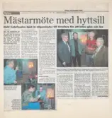 "Mästarmöte med hyttsill" (16 dec. 1994). Hald Gate-fonden bjöd in stipendiater till Orrefors för att äta och blåsa glas. Trol. artikel från Nybro Tidning 16 dec. 1994.
