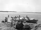 Konteramiral, Greve Gösta Ehrensvärd CKF. ombord på flaggskeppet HMS SVERIGES motorbarkass, åser kapprodden mellan de olika fartygsbesättningarna på Hårsfjärden 1939.