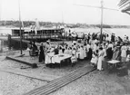Den tyska kejserliga jakten HOHENZOLLERN fotograferad på Stockholms ström under Wilhelm II:s besök i Stockholm 1908.
