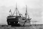 Ånglinjeskeppet Stockholm till ankars. Fartyget är nedriggat.