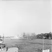 Tyska lätta kryssaren KÖNIGSBERG på Stockholms ström. Fartyget sänktes vid kaj i Bergen 16 april 1940 av en brittisk flygbomb.