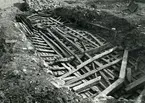 En del av de projektiler med mera av olika slag som påträffades vid utgrävningen av slottets vallgrav 1932-1934. På vissa plåtar har Martin Olsson klistrat eltejp för att markera hur bilden skulle beskäras i boken.