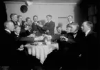 Gymnasistbal på Stadshotellet i Skara våren 1956 tillsammans med äldre skaradjäknar: Rektor Höijstad bjuds på bål.