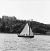 Utsikt mot norr omedelbart norr om kallbadhuset. I bakgrunden kopparverket. Stranden mot Öresund. Skåne, Malmöhus län, Råå.